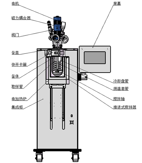產(chǎn)品功能和特點:升降型式,機電一體化設計、結構緊湊;框架支撐結構,配腳輪方便移動;主體可快開設計,開閉釜操作方便、快捷;升降輔助機構方便操作,手動/電動可選;高扭矩磁力傳動,配優(yōu)選電機,提升運行穩(wěn)定性;攪拌支持定制槳葉類型,適配多樣化攪拌需求;加熱爐傳熱快,均熱效果好,效率可調;真彩色觸控屏,模塊化顯示,控制界面操作簡潔;支持遠程控制,具備RS485通訊口,配上位機軟件;可顯示工作時間/溫度/轉速/壓力,PID自整定控溫精準;具備安全連鎖功能,超溫超壓報警;具備數(shù)據(jù)采集,記錄以及報表導出功能;支持選配加料、計量、取樣、冷凝等擴展功能。
